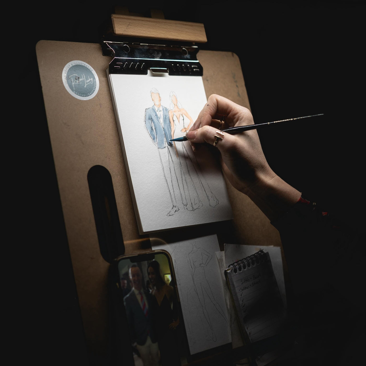 I’m Rachel, an Irish artist bringing human stories to life through refined figure illustrations and hand-painted guest portraits. Whether at luxury weddings or bespoke events, I transform moments and style into timeless keepsakes. Based in Ireland and working internationally, I offer a thoughtful, artful approach to storytelling and celebrating moments.